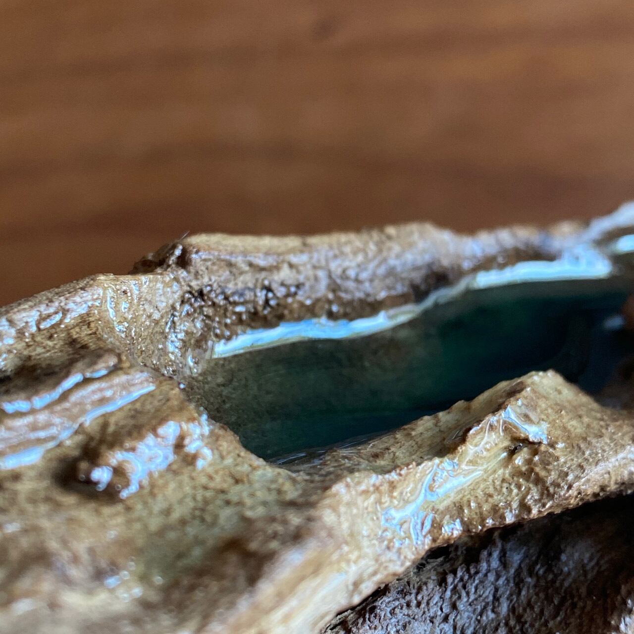 このオブジェは、そんな流木がかつて生えていた、水が豊かな渓谷の記憶を表現しています。