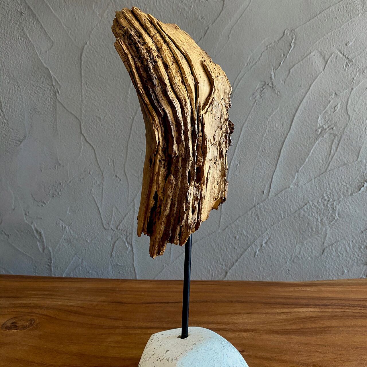 このオブジェは、そんな流木がかつて生えていた、水が豊かな渓谷の記憶を表現しています。