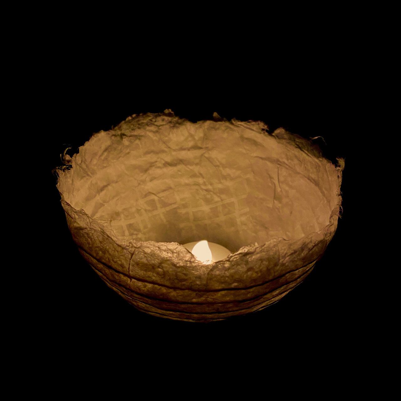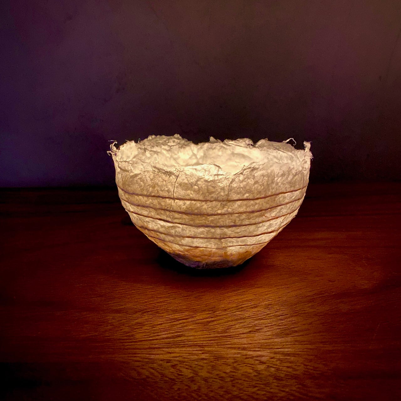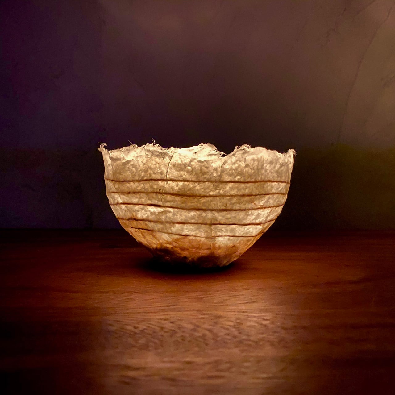 手漉き和紙で創った器です。中にLEDキャンドルを入れて、キャンドルホルダーとしてお使いください。