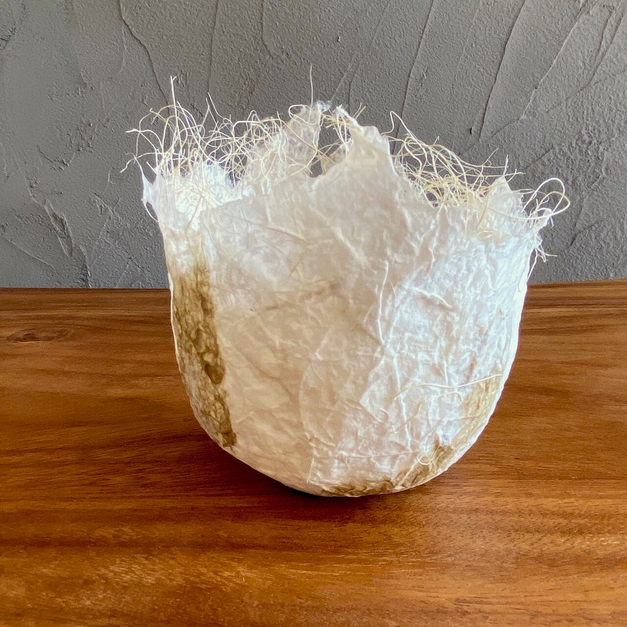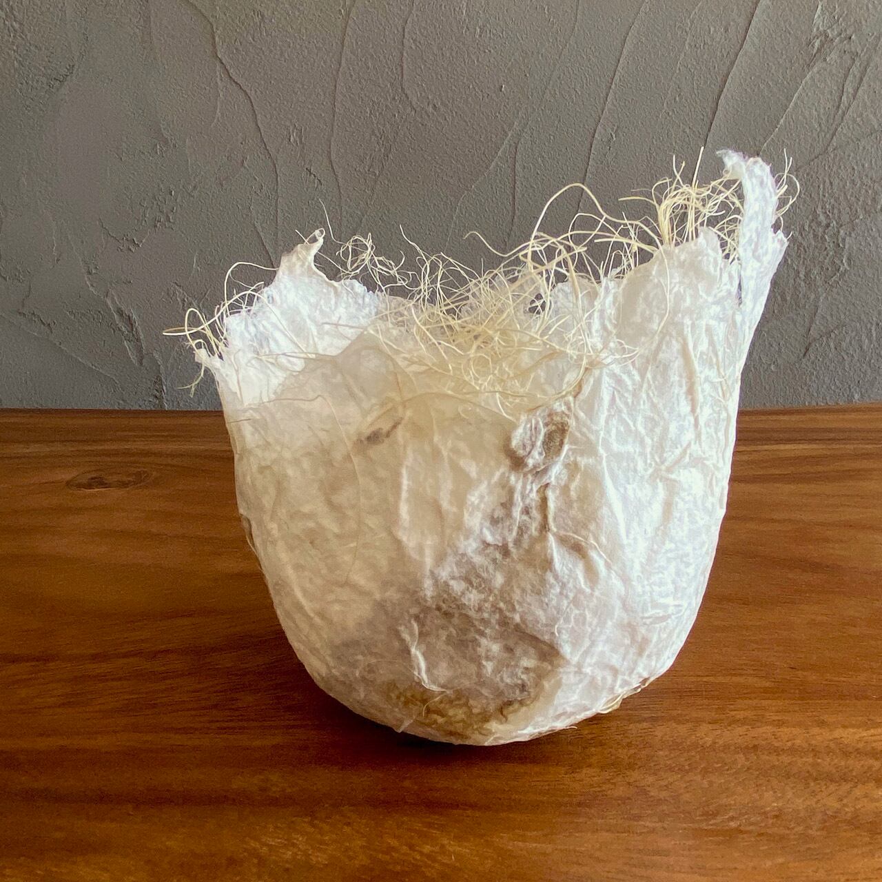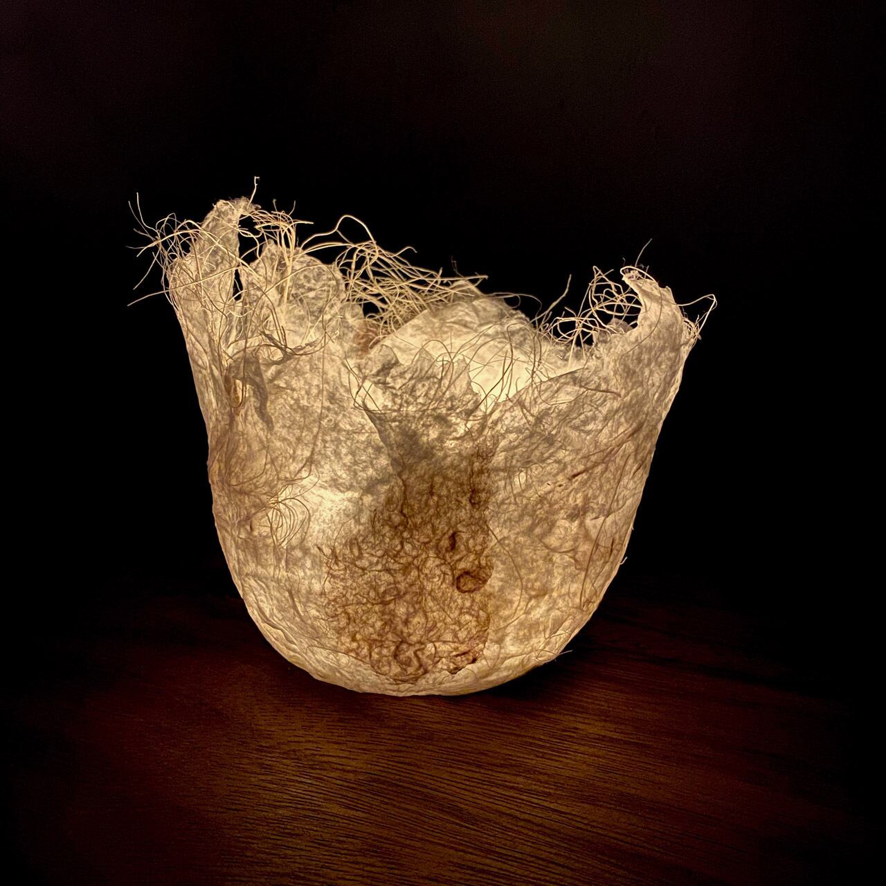 手漉き和紙で創った器です。中にLEDキャンドルを入れて、キャンドルホルダーとしてお使いください。